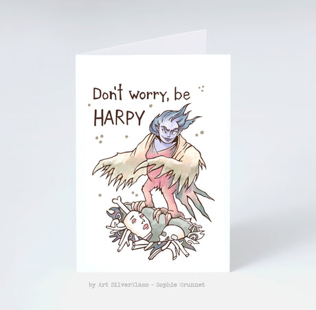 Postkort: Dont Worry, Be Harpy (med kuvert)