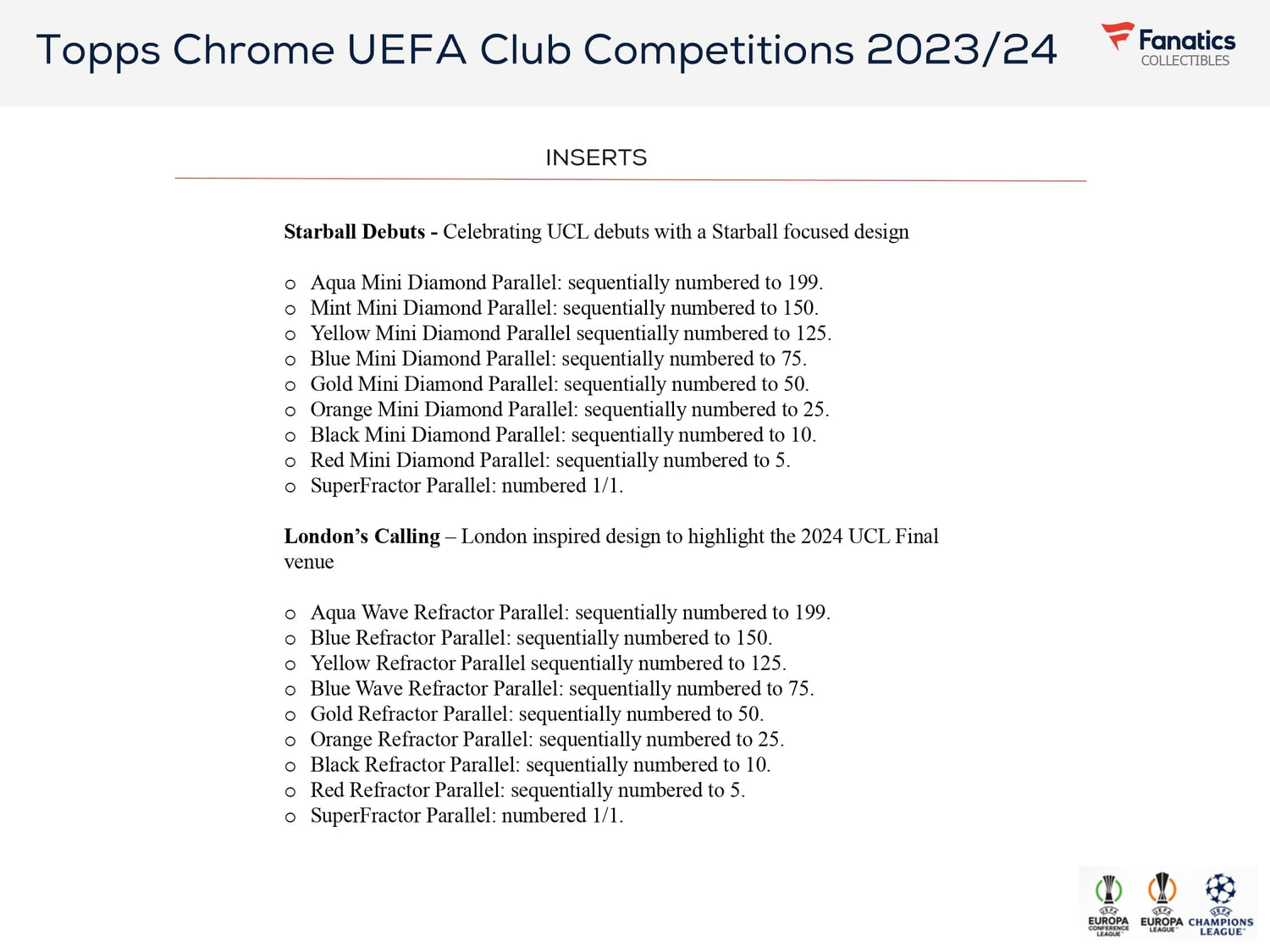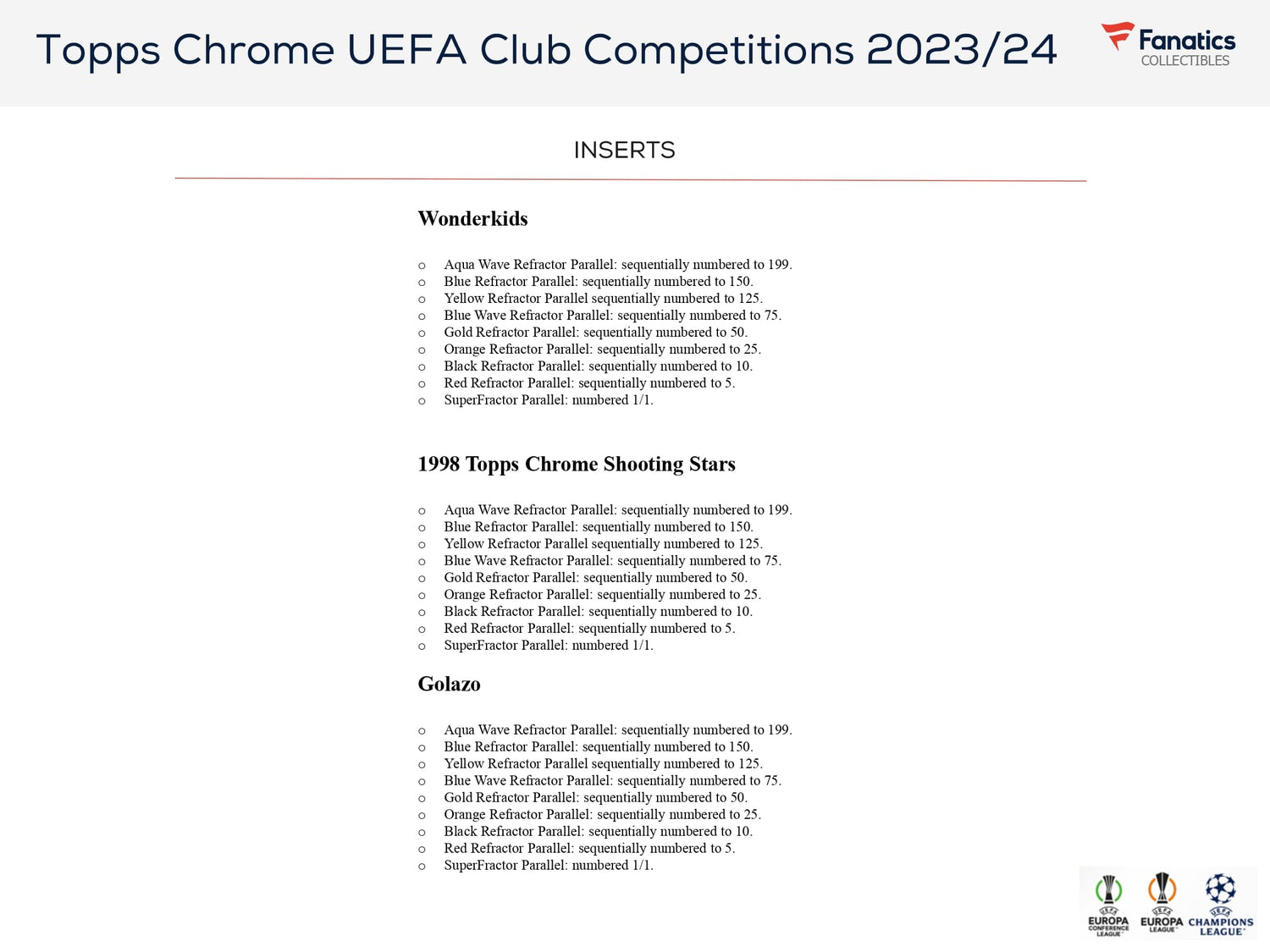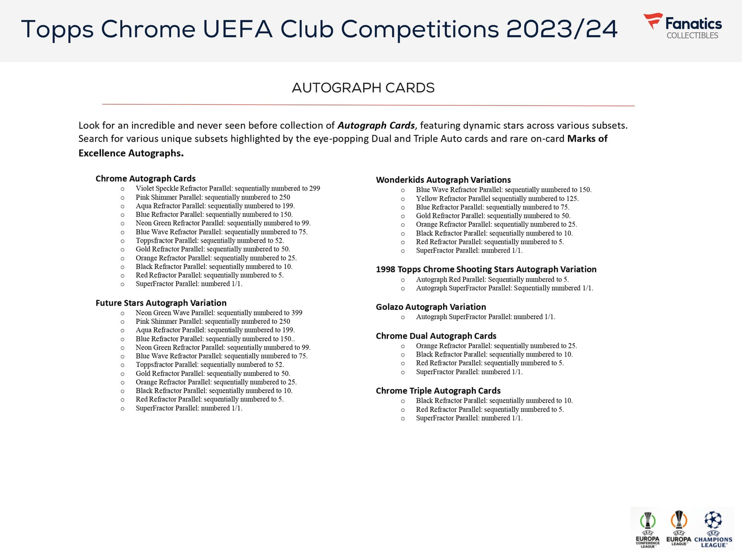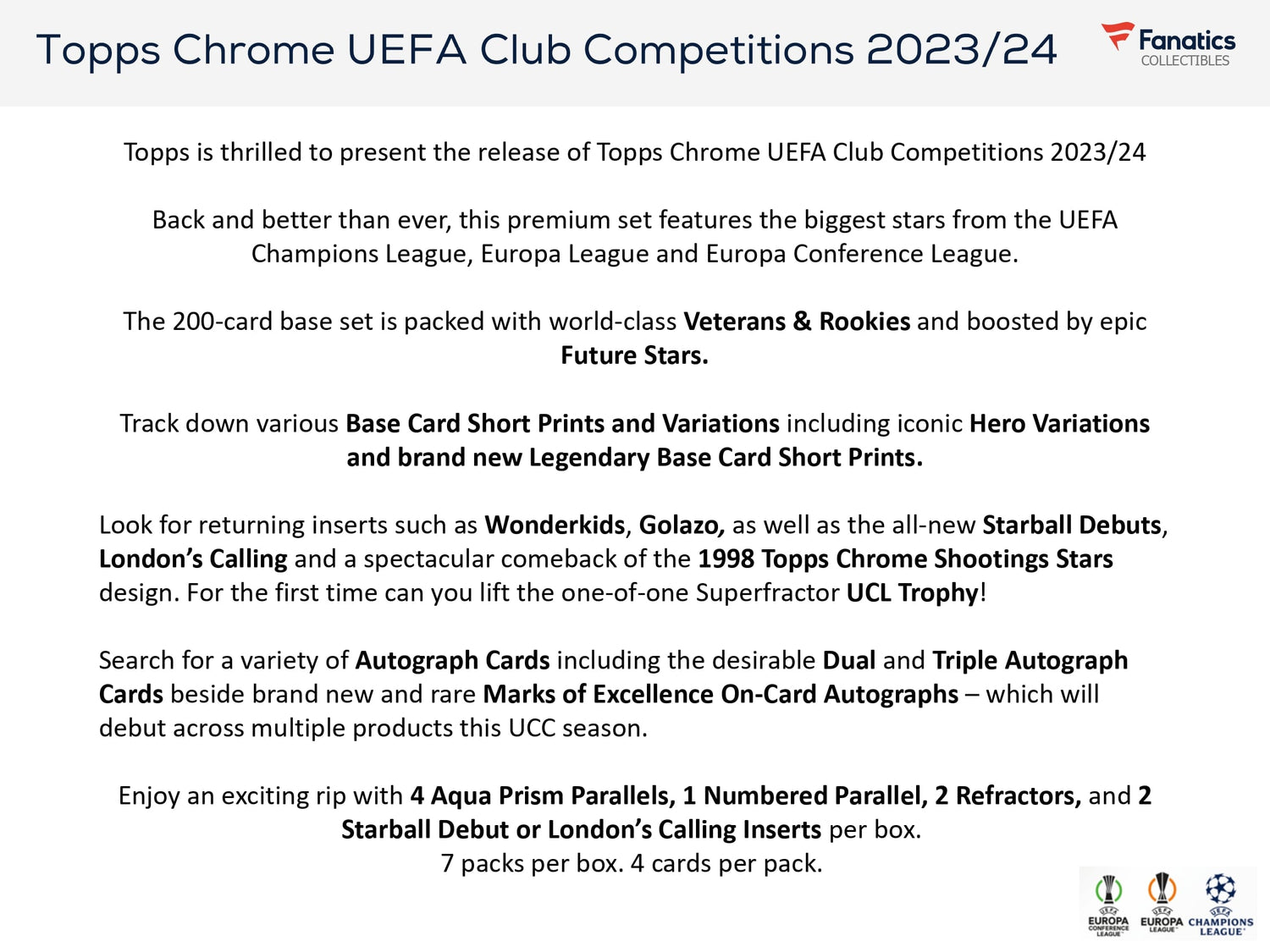 Topps Chrome UEFA Club Competitions 2023/24 er et premium sæt med de største stjerner fra UEFA Champions League, UEFA Europa League og UEFA Europa Conference League!