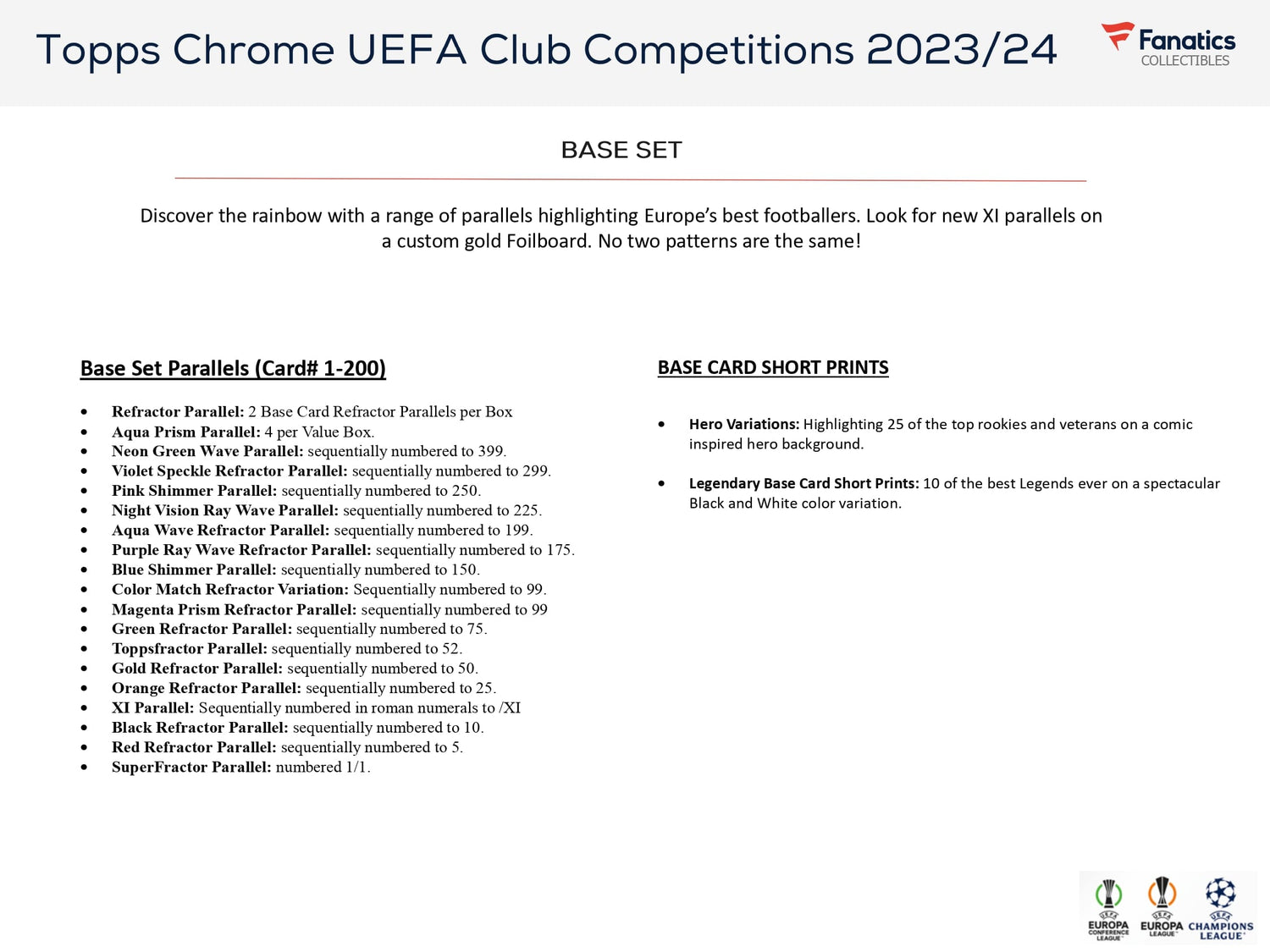 Find forskellige short prints og varianter af basekort, inklusive ikoniske hero variations og helt nye "Legendary" base kort short print.