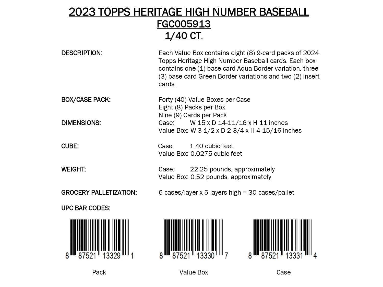 Topps Heritage High Number Baseball 2024 - Value Box indeholder: