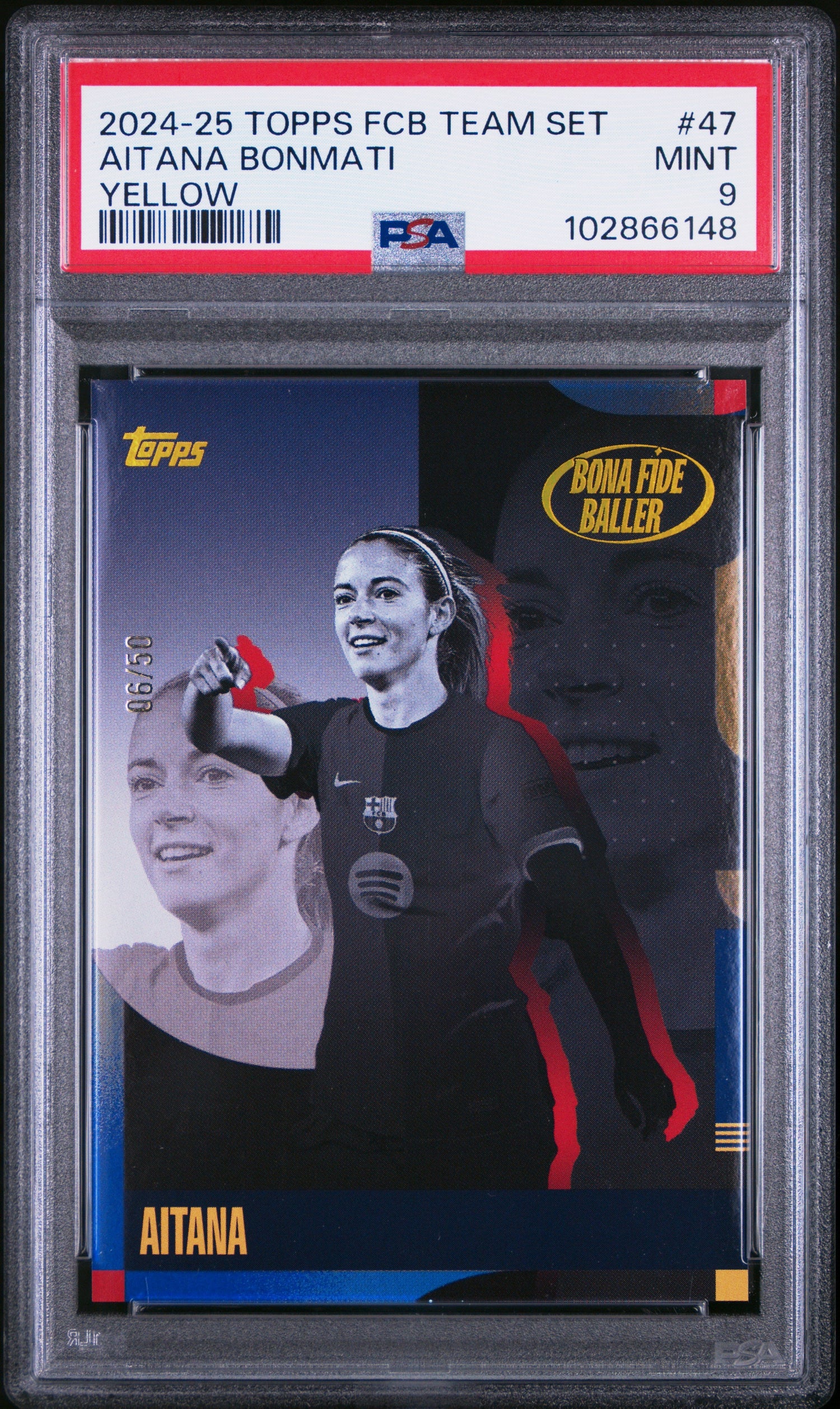 Aitana Bonmati #47 [Yellow] 09/50 PSA 9 [Topps Fc Barcelona Team Set 2024-25]