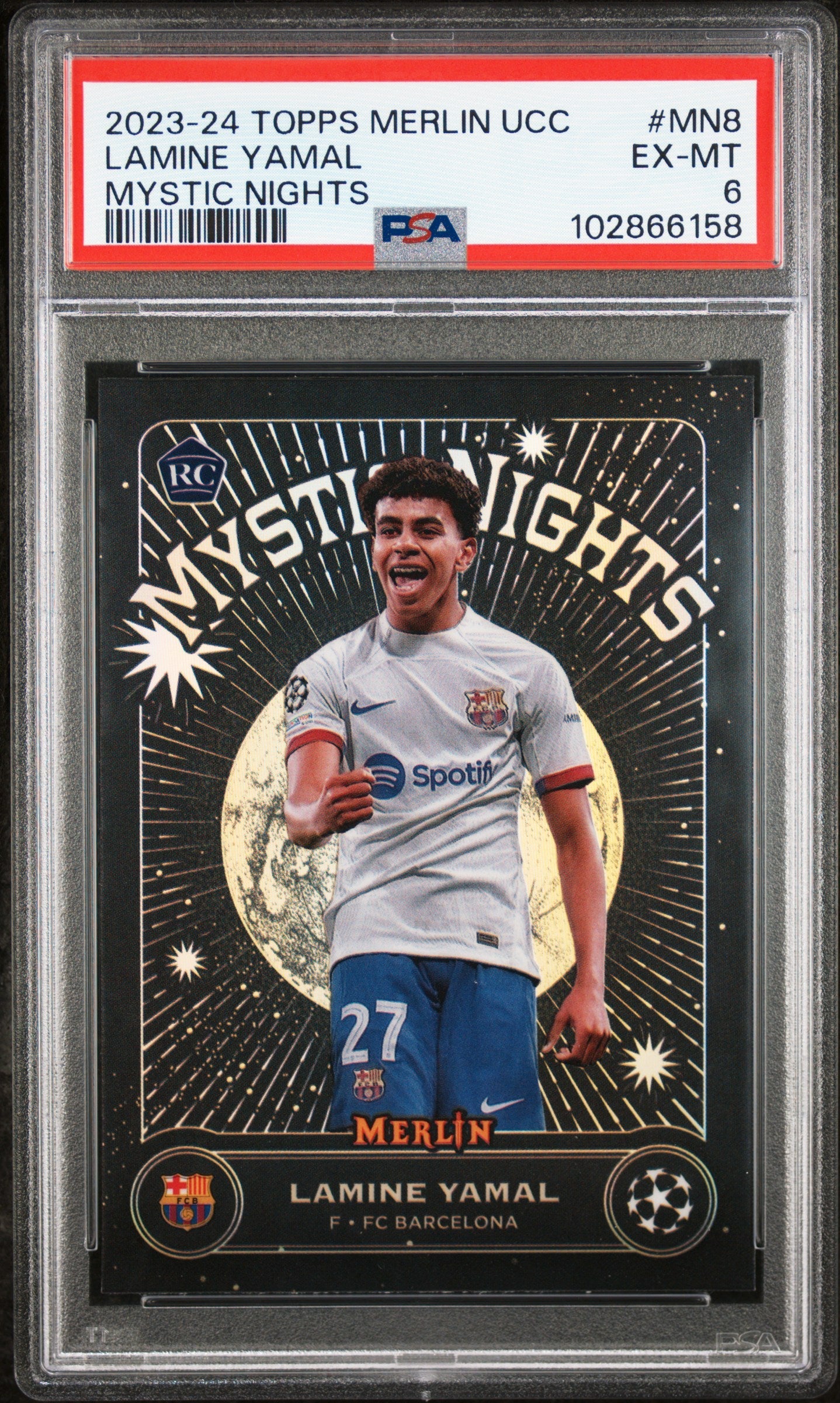 Lamine Yamal #MN8 [Mystic Nights] PSA 6 [Topps Merlin UEFA Club Competitions 2023-24]
