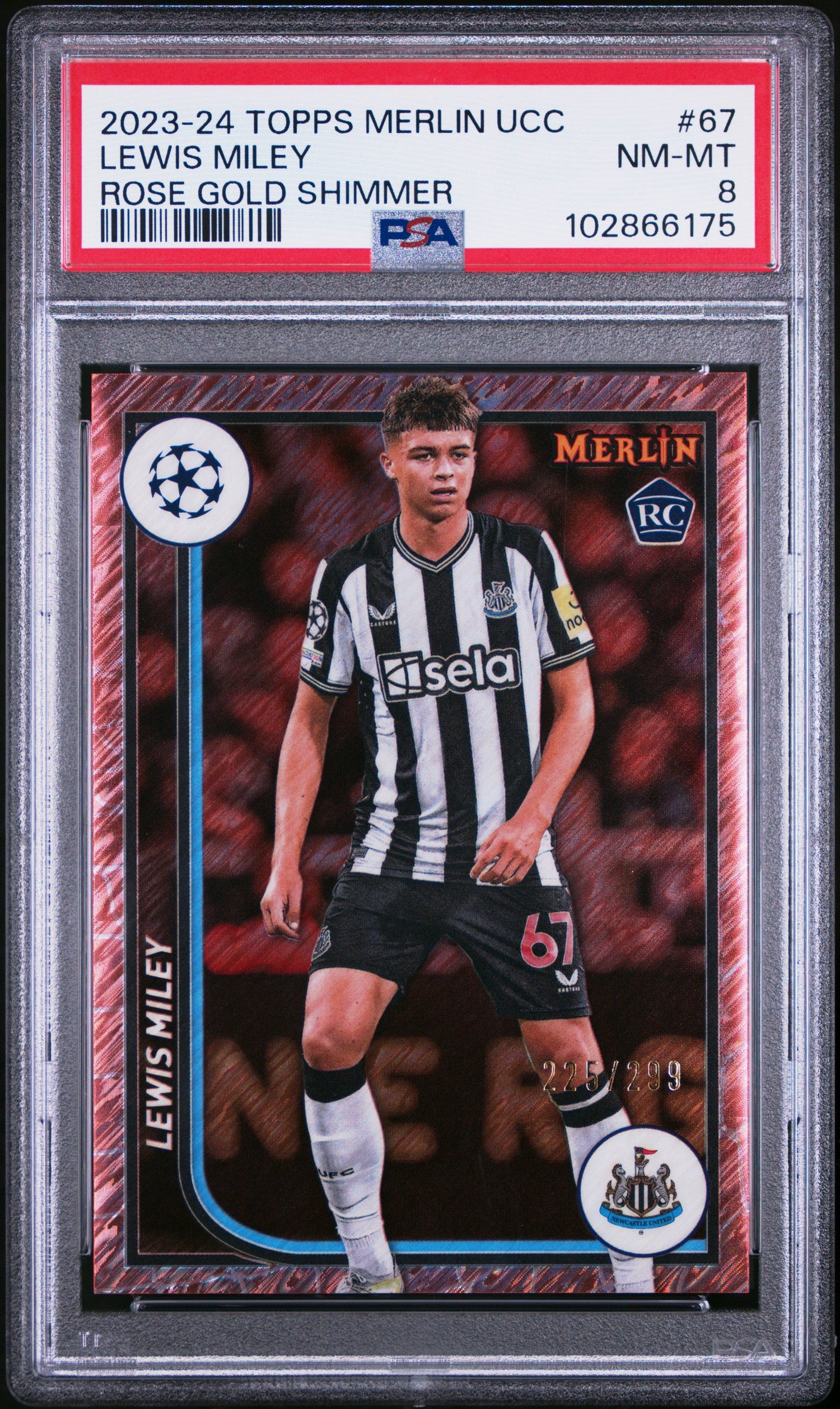 Lewis Miley #67 [Rose Gold Shimmer] PSA 8 [Topps Merlin UEFA Club Competitions 2023-24]