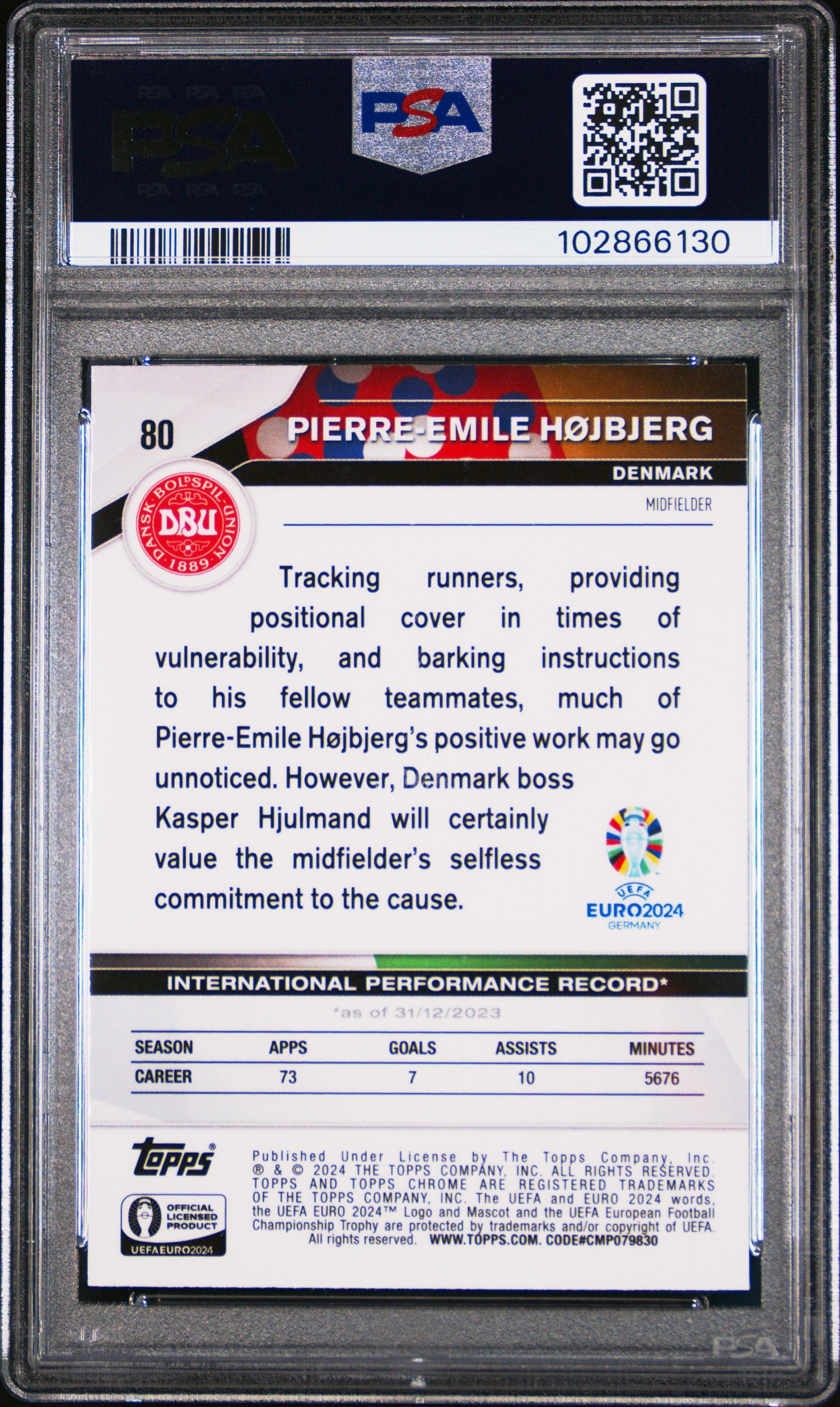 Pierre-Emile Hojbjerg #80 PSA 10 [Topps Chrome Sapphire UEFA EURO 2024]