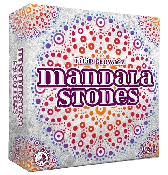 Mandala Stones er et spil fyldt med ro og skønhed! Arranger farverige sten for at skabe et kunstværk sammen med dine venner. Selvom der er mange skabere, kan der kun være 1 vinder. Påvirk kunsterne ved at placere dem på spillepladen, skab tårne ud af de indsamlede sten, og scor point.