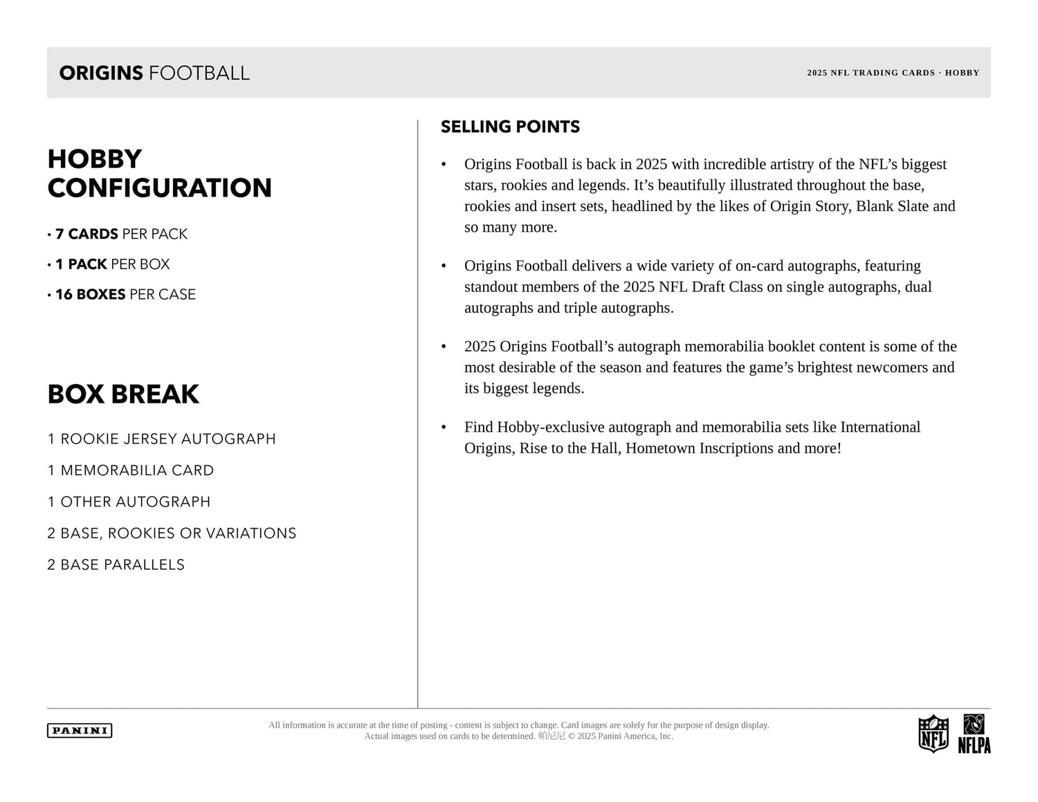 Panini Origins Football 2025 - Hobby Box
