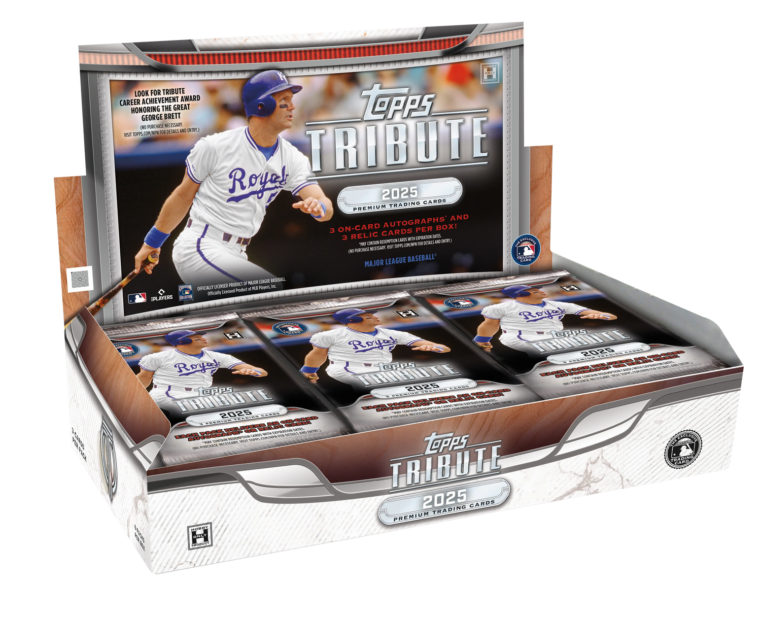 Topps Tribute Baseball 2025 indeholder: 3 autografkort 3 relic kort Min. 1 base parallel 6 pakker med 3 kort Se checklisten her.  Læs mere
