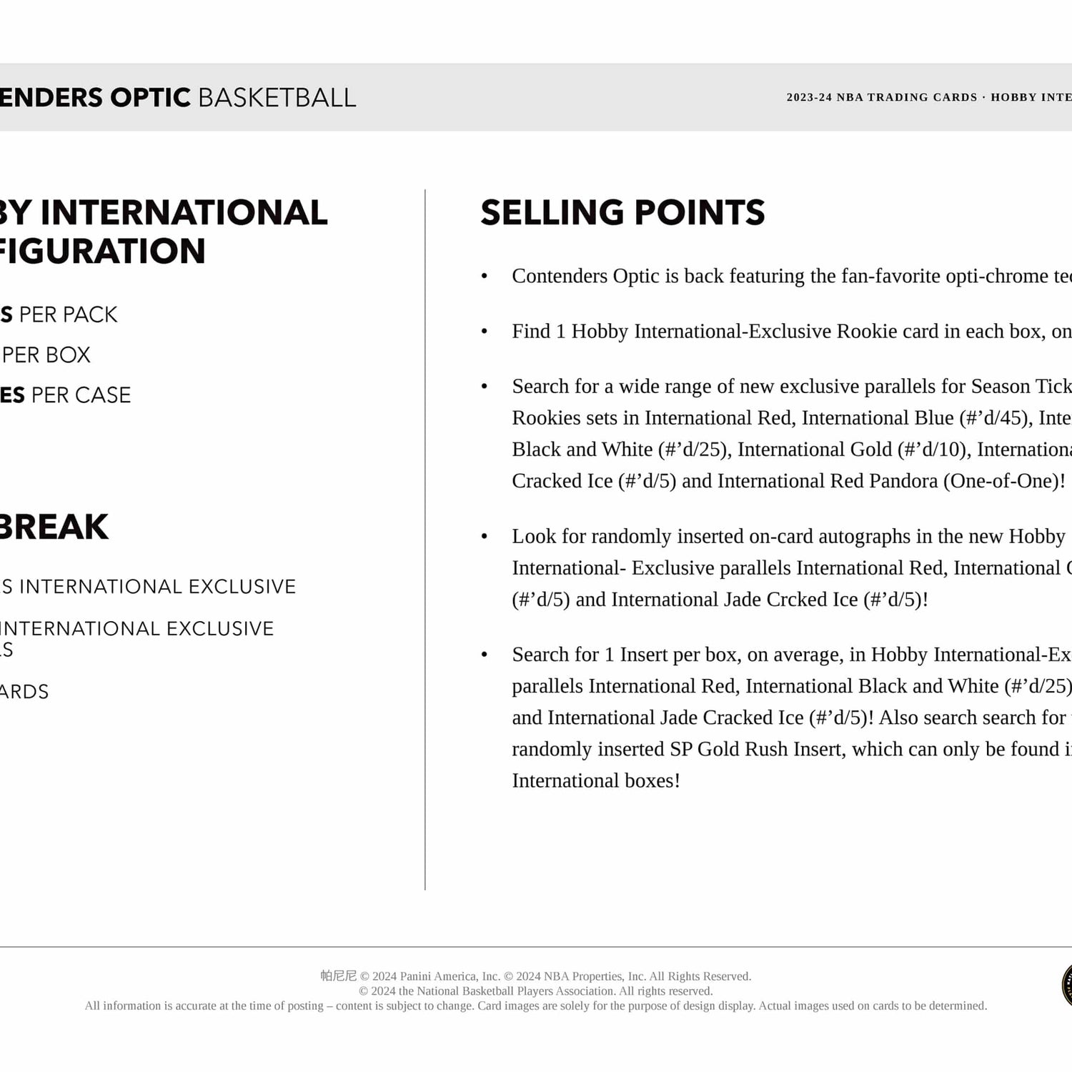 Panini Contenders Optic NBA Basketball 2023/24 - International Hobby Box