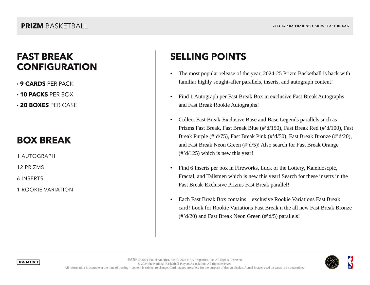 Panini Prizm NBA Basketball 2024/25 - Fast Break Box