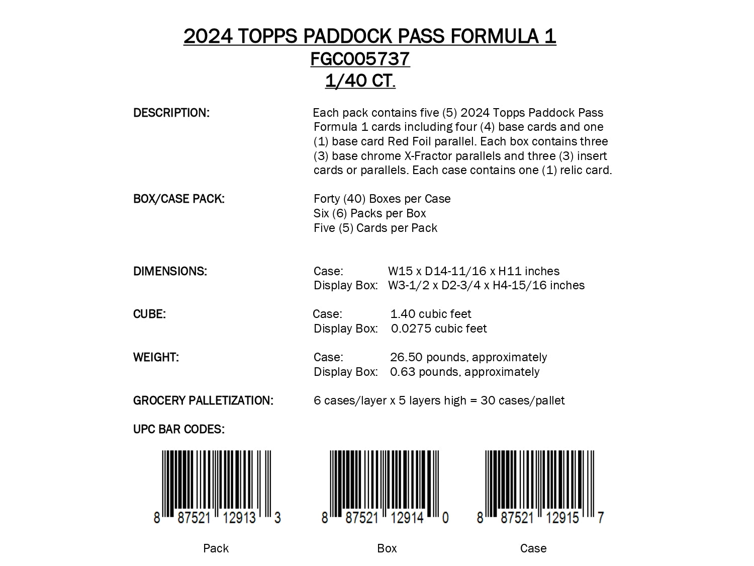Topps Paddock Pass Formula 1 2024 - Value Box