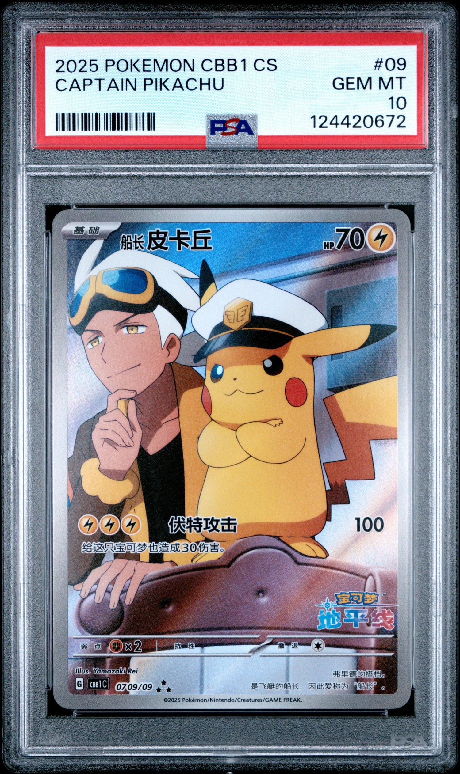 Captain Pikachu #09 Pokemon Simplified Chinese Cbb1 C-gem Pack Vol 1 2025 PSA 10