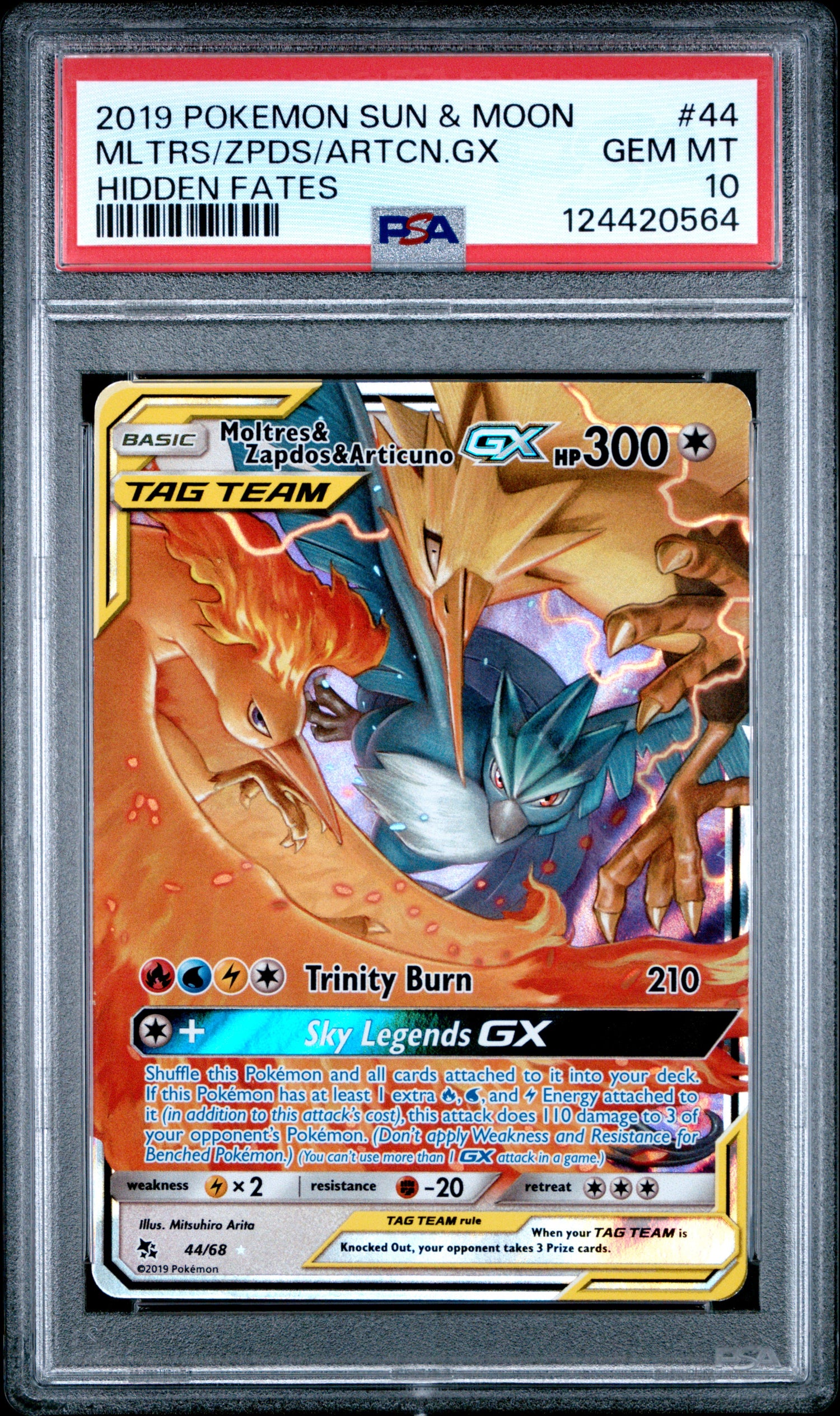 Moltres, Zapdos & Articuno gx #44 Hidden Fates Pokemon Sun & Moon 2019 PSA 10