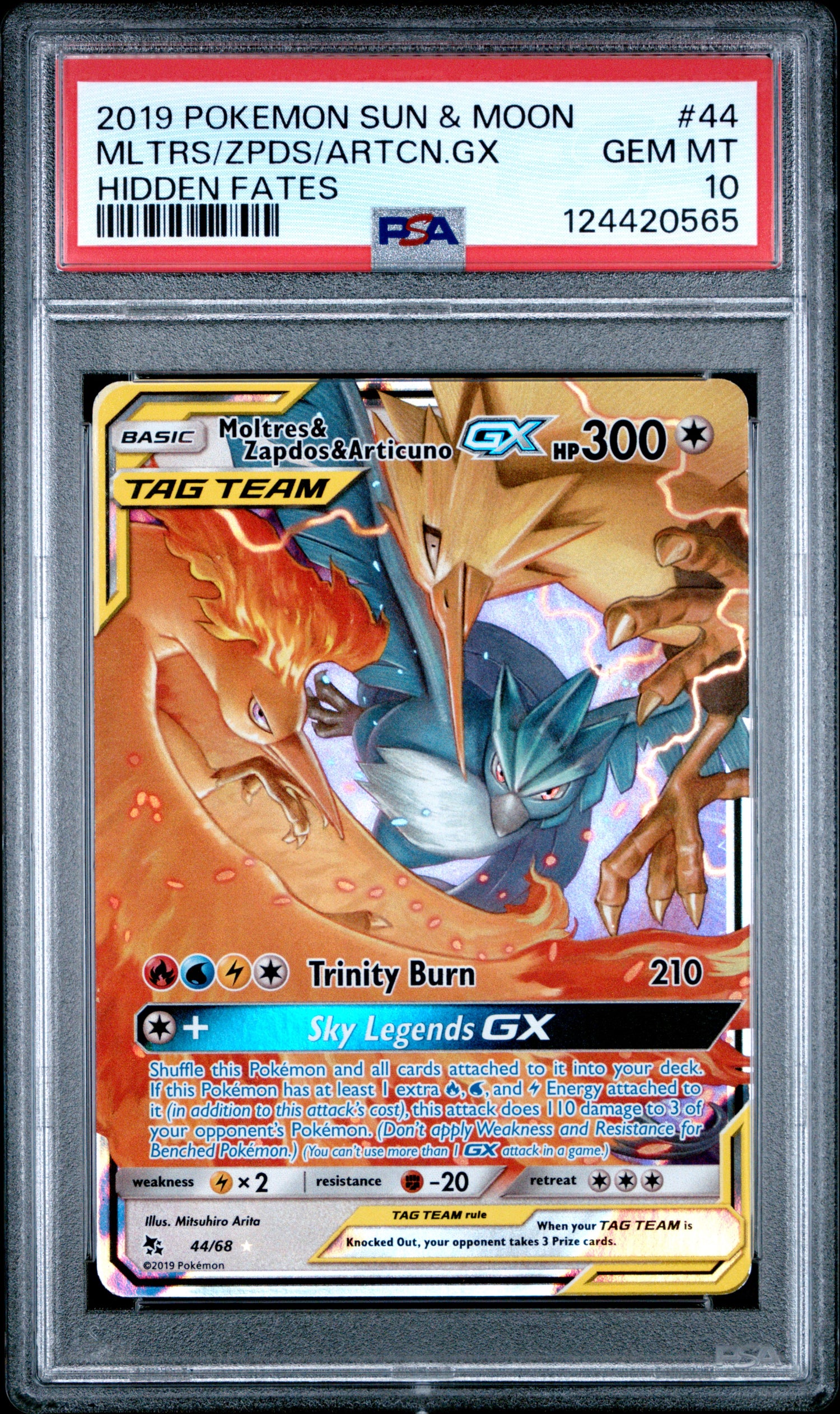 Moltres, Zapdos & Articuno gx #44 Hidden Fates Pokemon Sun & Moon 2019 PSA 10