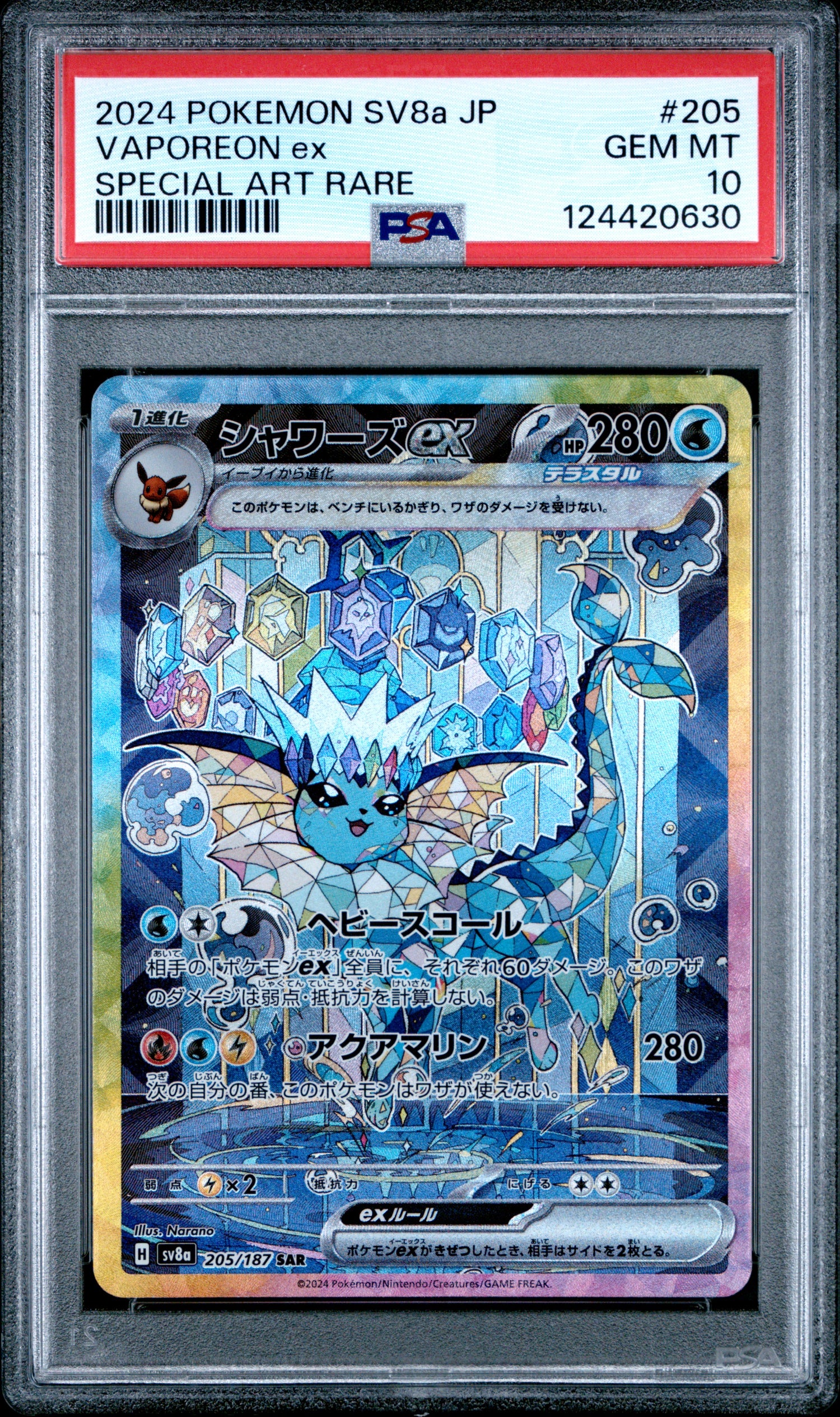 Vaporeon EX #205 Special Art Rare Pokemon Japanese Sv8a-terastal Fest EX 2024 PSA 10